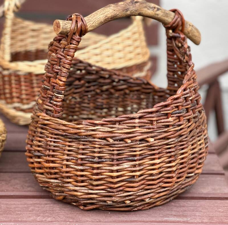 Die Kombination von Weide und Holzgriff sind wirklich traumhaft! 2 Tage lang werden wir in die alte Tradition des Korbflechtens eintauchen und Schritt für Schritt einen ganz besonderen Rundkorb anfertigen! Angefangen wird mit einem "Kreuzboden" der danach "aufgestakt" wird. Wir lernen einige Flechttechniken kennen, wie zum Beispiel "Fitzen", "Kimmen" und verschiedene Seitengeflechte die auch Schicht genannt werden. Anders als bei "normalem" Rundkorbflechten, werden bei diesem Korb die Staken nicht zu einem Zuschlag (Abschluss) verflochten, sondern so verarbeitet, dass es einen schräg hochgehenden asymmetrischen Abschluss ergibt. An den letzten stehenden Staken wird dann der Holzgriff auf besondere Art & Weise befestigt.